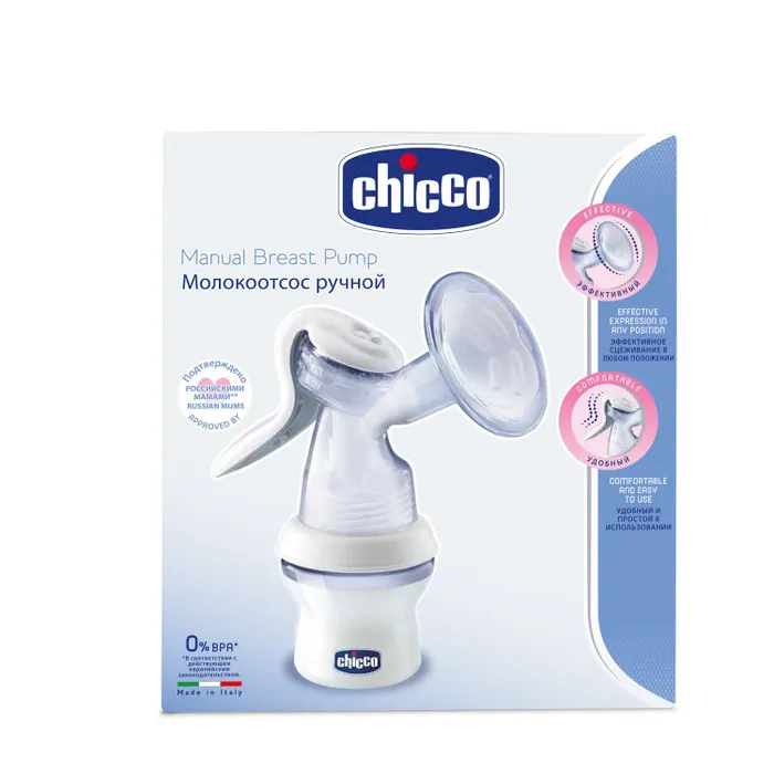 - Ручной молокоотсос Chicco изготовлен из высококачественных материалов и не содержит бисфенола-А, что делает его применение безопасным для ребенка.