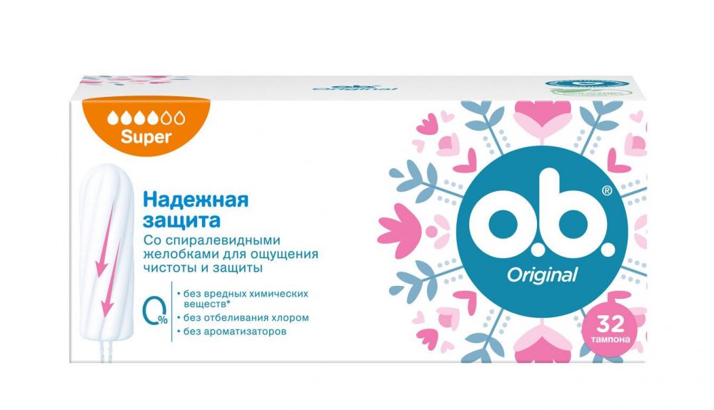 Тампоны женские гигиенические o.b.® Original super предназначены для использования в дни с интенсивными выделениями.