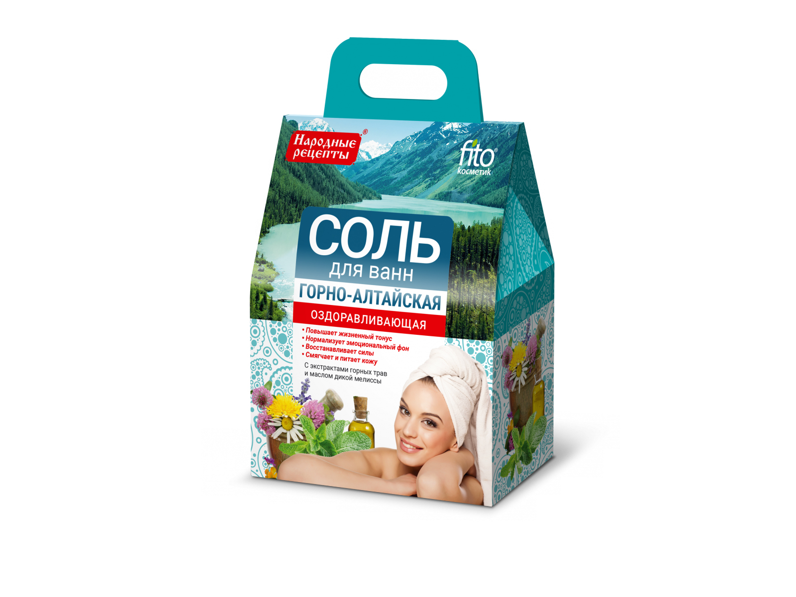 Ванны с горно-алтайской солью обладают выраженным оздоравливающим эффектом: укрепляют иммунитет, повышают жизненный тонус, снимают мышечную боль, выводят токсины. Входящие в состав целебные экстракты горных трав смягчают, питают и тонизируют кожу. Ароматное масло дикой мелиссы устраняет усталость, дарит умиротворение, глубокий и здоровый сон.