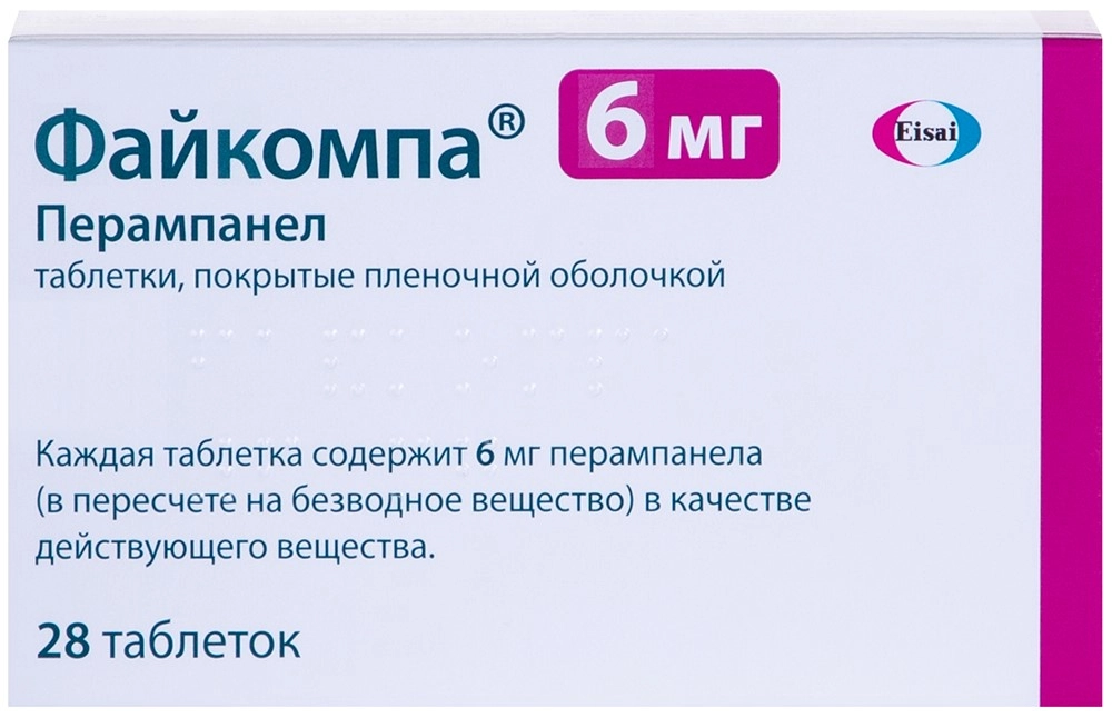 Было показано, что препарат Файкомпа в суточных дозах от 4 до 12 мг эффективен при лечении парциальных эпилептических приступов. Прием препарата Файкомпа следует начинать с дозы 2 мг в сутки. Доза может быть увеличена в зависимости от клинического ответа и переносимости с шагом 2 мг не чаще чем один раз в неделю до 4-8 мг в сутки. В зависимости от индивидуального клинического ответа и переносимости препарата в дозе 8 мг в сутки, возможно дальнейшее повышение дозы препарата Файкомпа до 12 мг в сутки с шагом 2 мг не чаще чем один раз в неделю. Несмотря на то, что перампанел обладает длительным периодом полувыведения, рекомендуется, как и для других ПЭП, отменять его постепенно, чтобы минимизировать вероятность повышения частоты приступов.