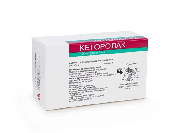Более 50% введенной дозы метаболизируется в печени с образованием фармакологически неактивных метаболитов. Главными метаболитами являются глюкурониды, которые выводятся почками, и р-гидроксикеторолак, который выводится на 91% почками, 6% — через кишечник.